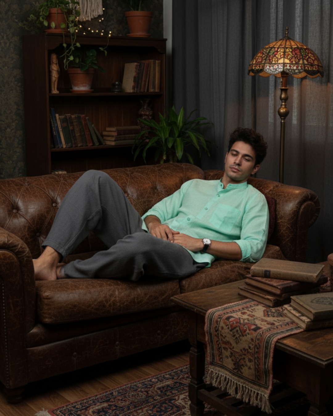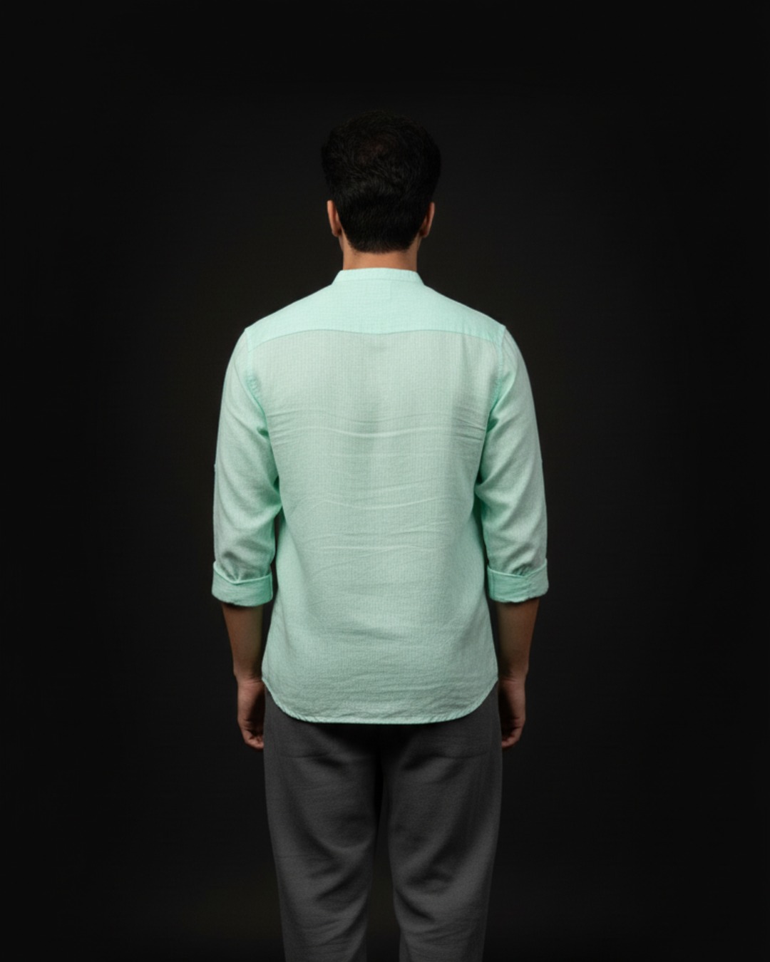 Its Mint Tide hue brings a refined vibrance to your wardrobe ideal for brunches, summer evenings, beachside escapes, or casual Fridays. The band collar adds a touch of modern minimalism, pairing well with chinos, trousers, or linen shorts.