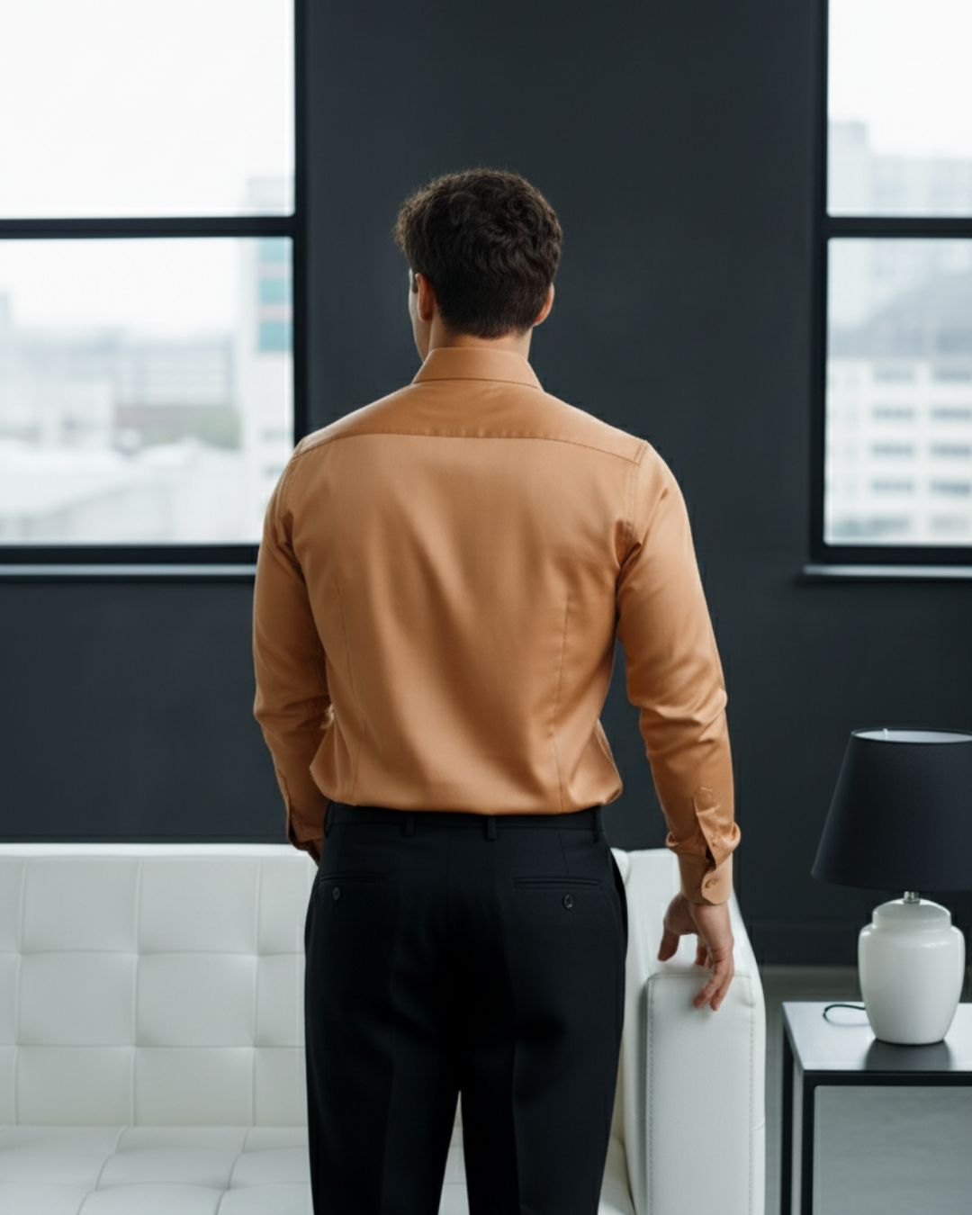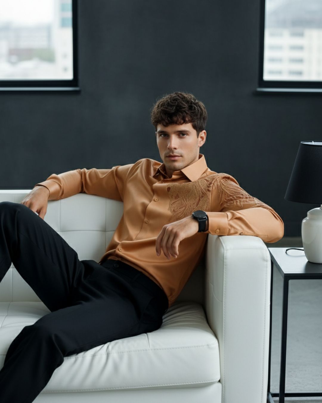 Premium Giza Cotton | Caramel Gold | Royal Lion Embroidery | Ultra Soft | Breathable | Tailored Elite Fit | Luxury Eveningwear Shirt
