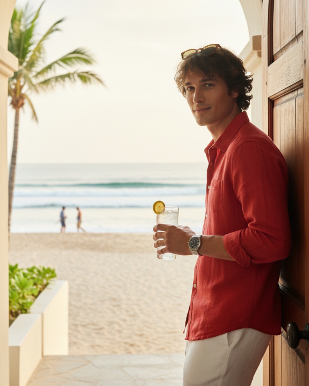 Crafted from 100% pure linen, this shirt offers a naturally breathable, feather-light texture that feels as effortless as it looks. The Terracotta hue inspired by coastal sunsets embodies relaxed elegance, perfect for beachside brunches, vacations, and evening soirées.